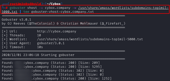 We helped ourselves from Gobuster and listed 5 corporate subdomains.