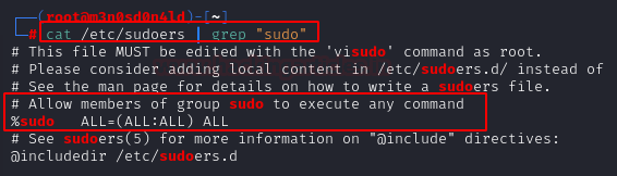 We read our file “/etc/sudoers” and we have the group “SUDO“.
