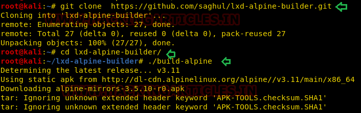 git clone https://github.com/saghul/lxd-alpine-builder.git cd lxd-alpine-builder ./build-alpine
