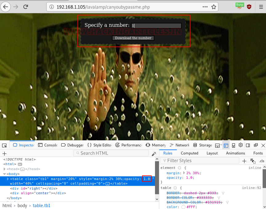 With the help inspect element we changed the opacity 0:0 to 0:1 and got the form visible on the web page.