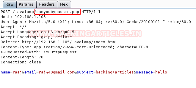 The intercepted request shows that here the HTTP Post method is used to submit the request at /canyobypassme.php page.