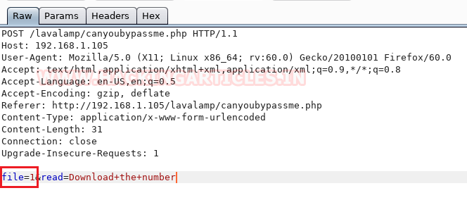 Now it was time to intercept the form’s http request by entering a value as a specific number. So, we’ve got the intercepted request in the burpsuite where we’ve seen the parameter “file=1” and maybe there’s a possibility for LFI, so we’ve sent the request to the repeater.