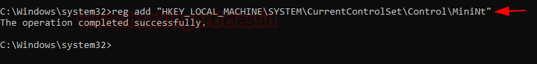 reg add "HKEY_LOCAL_MACHINE\SYSTEM\CurrentControlSet\Control\MiniNt"