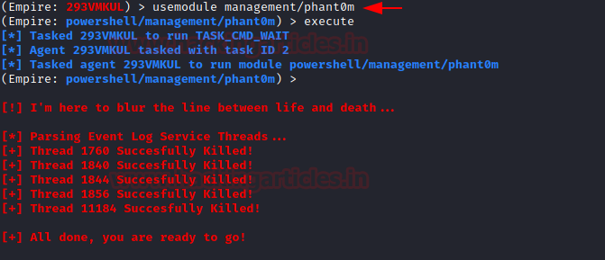 The PowerShell Empire can also be used to clear logs, classify Event Log threads, and destroy Event Log Service threads.