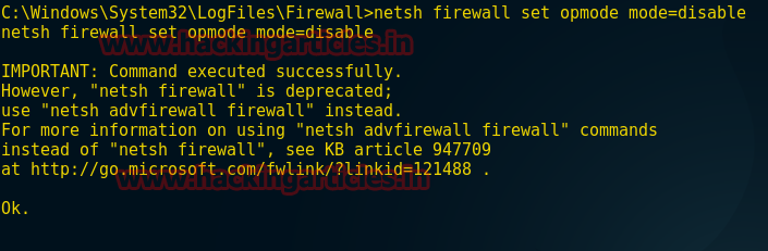 To delete pfirewall.log we must turn off firewall, type following command to disable the firewall from victim PC.