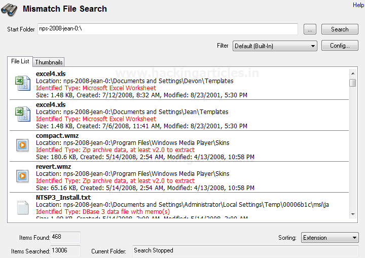This feature enables us to identify the files whose extensions don’t match their data. Through this, we can capture some relevant evidence that could be in form of an image, document or pdf but pretending to be of some other extension. For example, a word file can be mismatched with a jpeg file (such a data could be also called “Dark Data”).