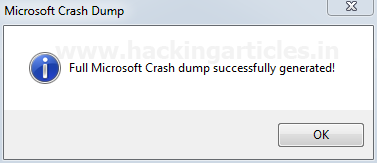 We can also save a crash dump, just browse to a directory and save the file. The extension of the crash dump file is .dmp. In the below image, we are saving a crash dump file with a name CrashDump.dmp. We will get the following message when the dump is in progress