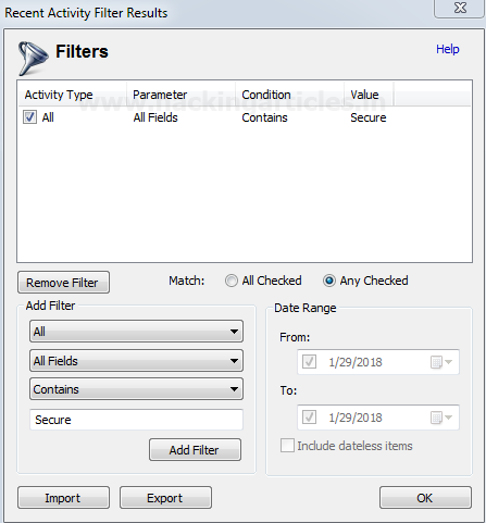 Check/Uncheck the options as required or if required change the date/date range for a particular time-based activity and click OK.