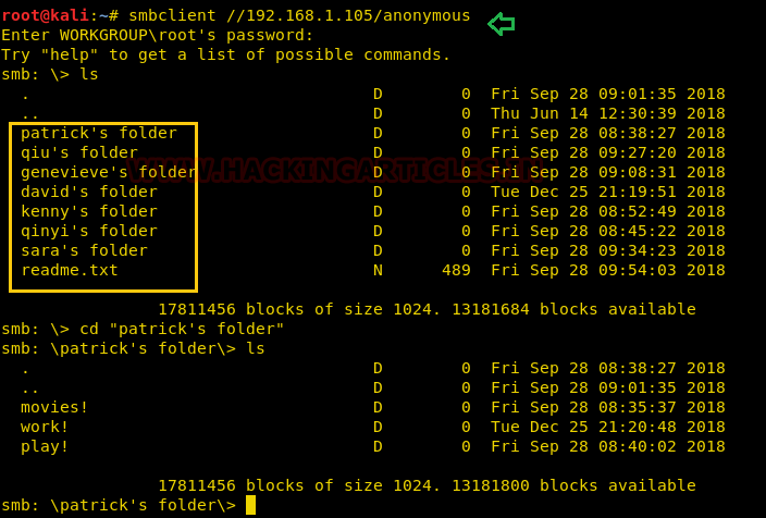 smbclient //192.168.1.105/anonymous password: qwertyuioplkjhgfdsazxcvbnm