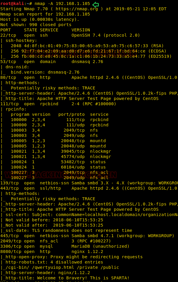 So we have our target IP 192.168.1.105 now, let’s scan services and ports via nmap.