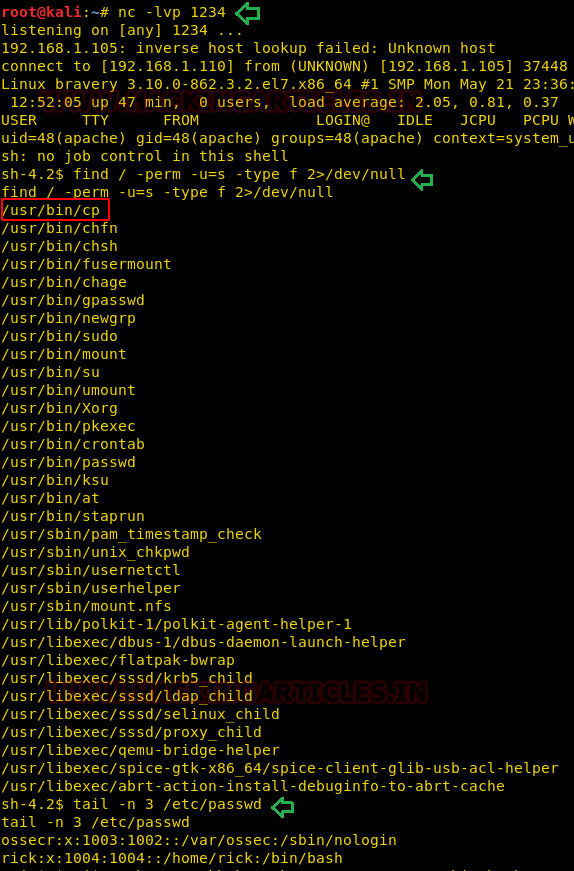 Hmmm! So here I notice cp (copy command) has SUID permission that means I can copy any file as root. Now let’s try to escalate the privilege by exploiting SUID enable binary by copying our edited /etc/passwd file inside the victim’s machine.