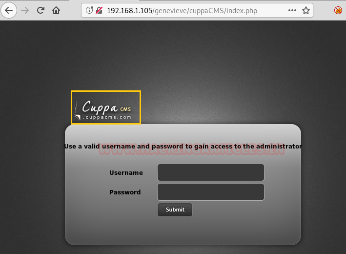 I found a Cuppa CMS login page by exploring other tabs. This might be a turning point as we are attempting to exploit CMS cuppa.