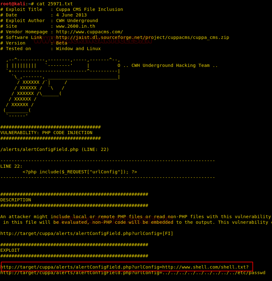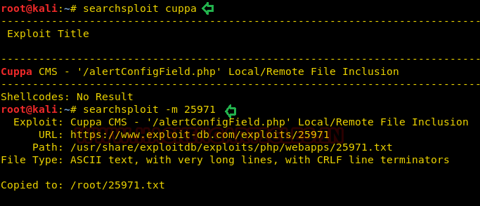 I dig out cuppa exploit from inside the searchsploit without wasting time and the CMS is vulnerable to LFI/RFI.