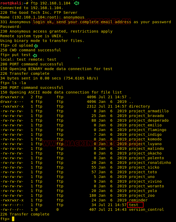 Thus, again we decided to use FTP anonymous login for replacing genuine /test file with bogus /test file which will be a backdoor to provide higher privilege shell.