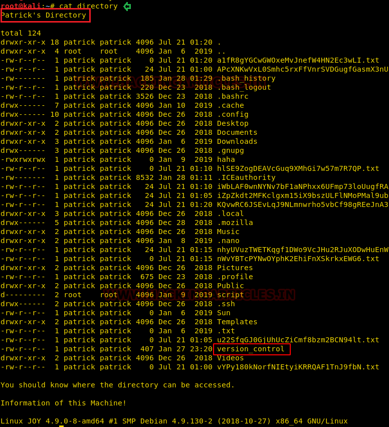 So, by reading directory file, you will evaluate that, this file gave a brief idea about Patrick’s directory where Patrick should be the user account. In this, we look at a file name “version_control” it could be considered as a suspect.