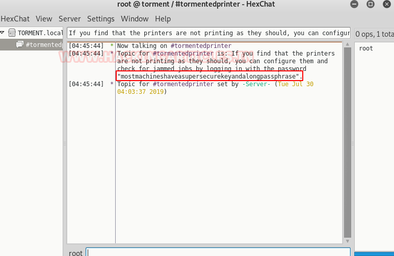 After connecting, it asked to join the channel and if you remember we have already two-channel names games & tormentedprinter with us. We used both and the later had some important information for us.