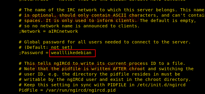 So what we did is we installed the ngircd on our kali system only to look for the default password of ngircd chat service.