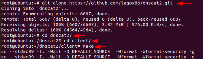 git clone https://github.com/iagox86/dnscat2.git cd dnscat2/ cd client/ make