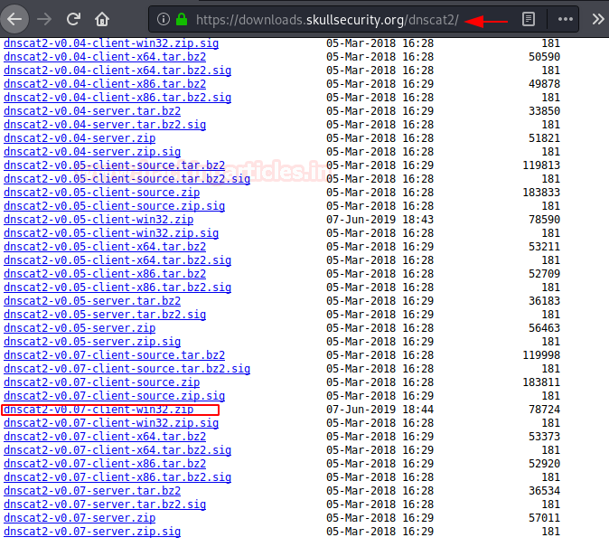 The same can be done easily for a window’s client too. Follow the link here to download a suitable dnscat2 client for your system of windows. The latest client of dnscat for windows is marked in the snapshot below for reference.