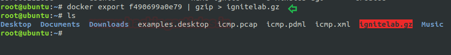 docker save <container name> | gzip > {path for tar} filename.tar docker load -i /home/raj/docker/igniteimage.tar