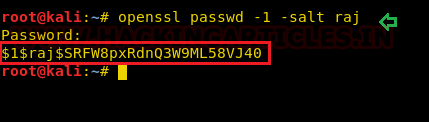 openssl passwd -1 -salt raj