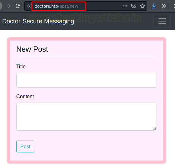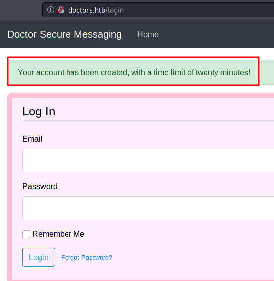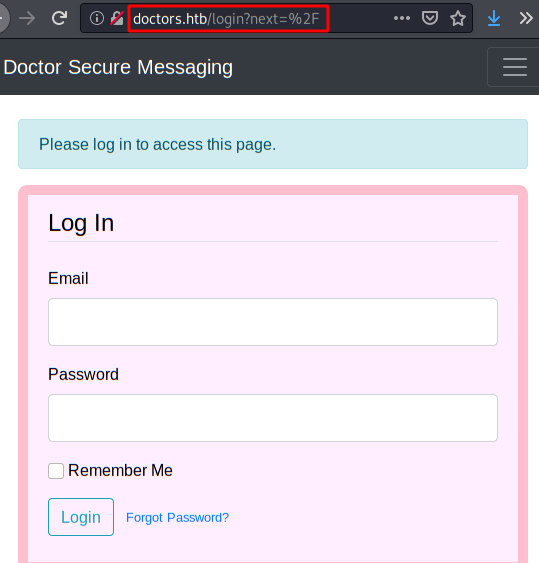 We will insert of domain “doctors.htb” in “/etc/hosts” file. We visite the website and we found a panel control with authenticate the system.