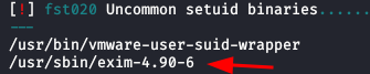 We enumerate two uncommon setuid binaries with “lse.sh” script, exists exploits for the version “Exim 4.90“, but is a rabbit hole.