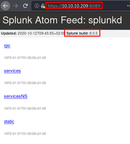 We will access the web service of port 8089, Here we enumerate Splunk version.