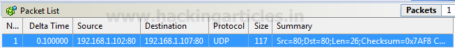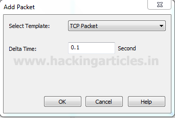 Again repeat the same to choose UDP packet for generating TCP flood on the target’s network. If you will notice given below image then you will observe that again I had set delta time 0.1 sec as time elapses for the flow of traffic for all packets.