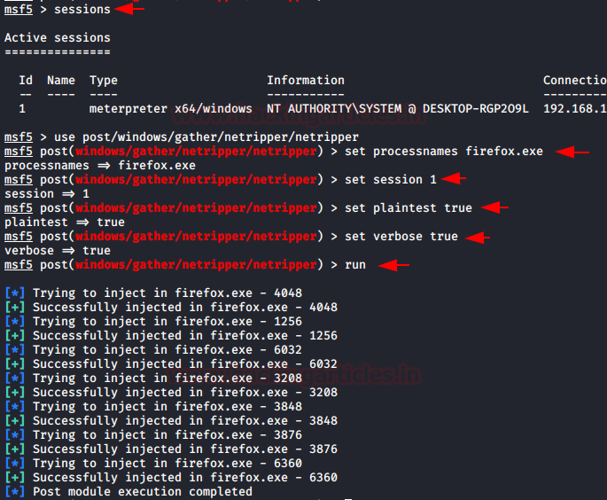 NOTE: This is not a 100% guaranteed method as sometimes other factors play a significant role to prevent the NetRipper from capturing the passwords. I tried multiple times with multiple websites and credentials. There were times when I was not able to gather the credentials. So, this is not full-proof but It is a useful tool none the less.