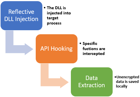 In the case of Web Browser, suppose the victim is browsing a particular Web Service. He/she enters their credentials in a form created on the Web Page. The data on this form is supposed to be encrypted and carried to the Host Server with the help of a Web Service or API. The NetRipper hooks to that particular API and reads the credentials that are was carrying and then stores the data back into the Victim’s system.