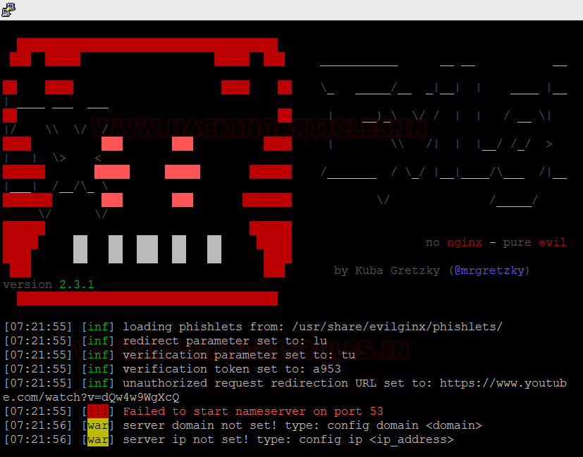 We need to configure Evilginx to use the domain name that we have set up for it and the IP for the attacking machine.