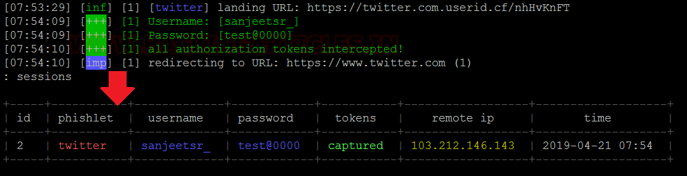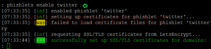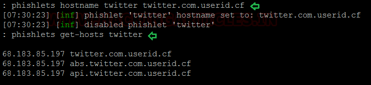 phishlets hostname twitter twittwer.com.userid.cf phishlets get-hosts twitter