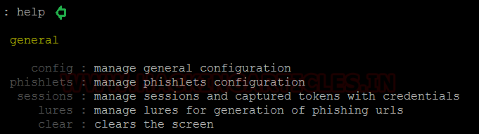 This is the part where we prime Evilginx for the attack. At the Evilginx terminal, we use the help command to see the various general configuration options that it has.