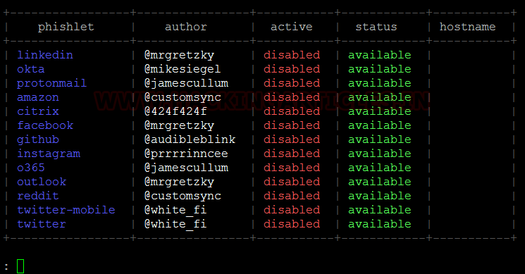 There is multiple built-in options that the attacker can utilize to choose a site template called Phishlets.