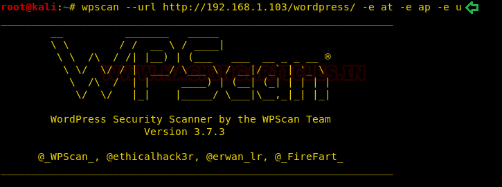wpscan --url http://192.168.1.103/wordpress/ -e at -e ap -e u