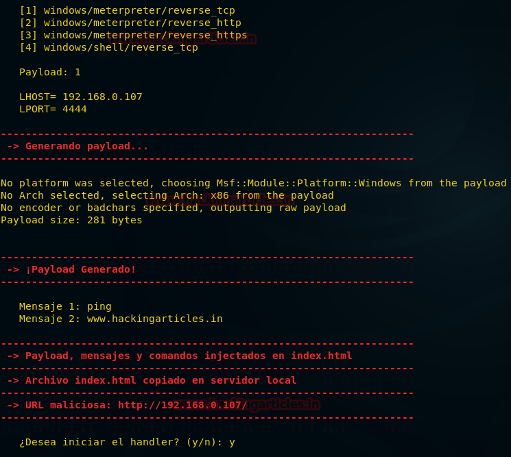 You will now get an option to enter the message you want displayed as the pastejacking text, for example: we have written “ping” and “http://www.hackingarticles.in”.