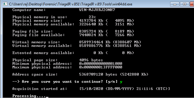- Complete: Picking this choice will create a memory dump, collects volatile information, and also creates a full disk image.