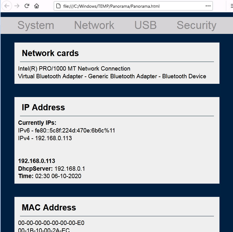 The system distributes the report data in a different section as a system, network, USB, security, and others.