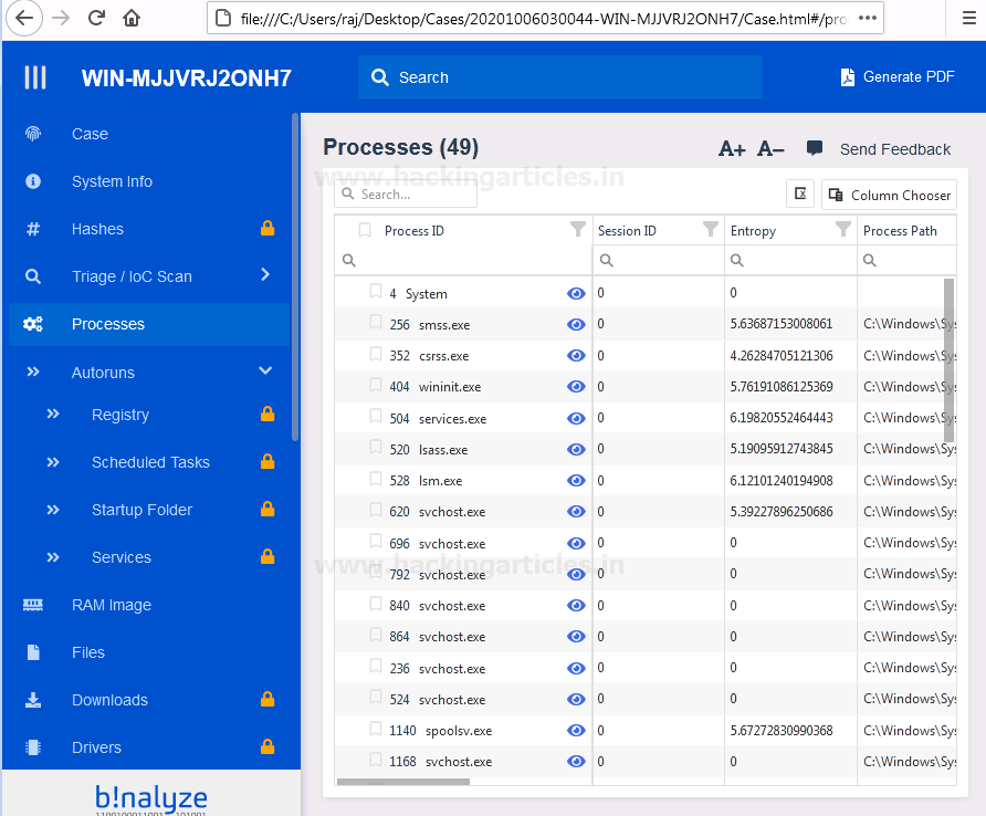Here is the HTML report of the evidence collection. The HTML report is easy to analyze, the data collected is classified into various sections of evidence. You can also generate the PDF of your report.