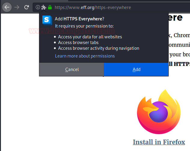 To add this extension in your browser, simply open your browser. And then search for the particular extension. From the extension store, click on the “Add to Firefox” button and then again, from the pop-up dialogue box click on the “add button” as shown in the image below. The extension will be added to your browser. And you can customise the settings of the extension from the extension widget on the right-hand side of the URL tab.