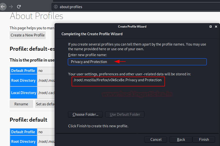 Similarly, you can create as many profiles as you want with different names depending on your needs. In the image below you can see that we have created yet another profile by the name of Privacy and Protections. The default location of every profile in windows is C:\Users\%username%\AppData\Roaming\Mozilla\Firefox\Profiles and in Linux the path will be /root.mozilla/firefox/. Privacy and Protection (as shown in the image below) but you can always change it as per your desire.