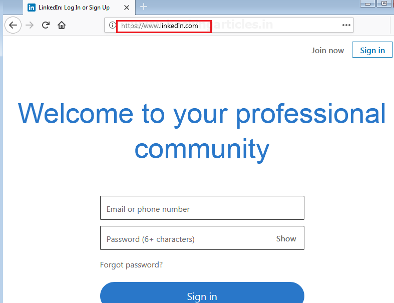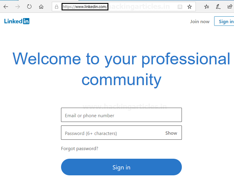 Now on client system, open browser and type www.linkedin.com/ in URL, see the resulting Site is opening.