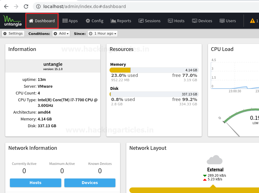 Let’s come to the Dashboard of untangle & you can see almost all the information in one page.