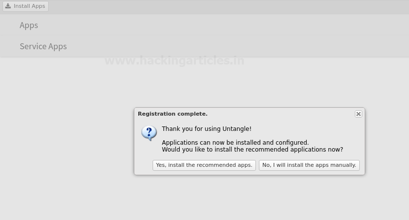Now installing the desired apps and possibly tuning the configuration of Untangle NG Firewall. In my testing Lab, I am going with Install the recommended APPS.